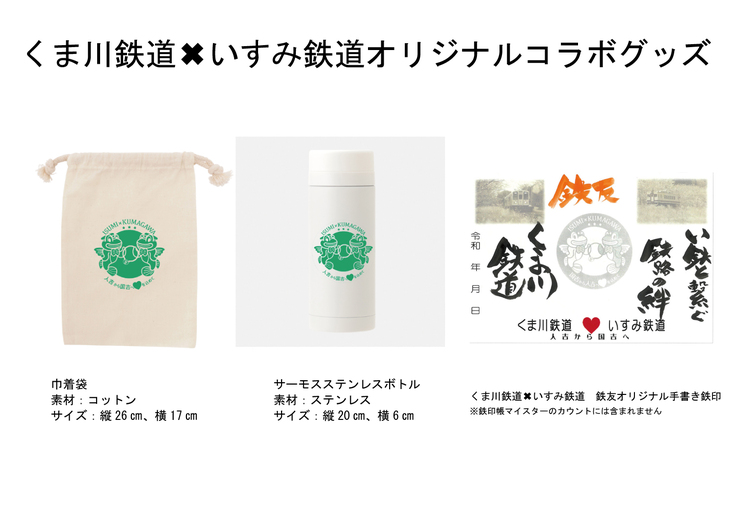 くま川鉄道といすみ鉄道はとても縁が深く、日頃より、深ーいお付き合いをさせていただいております。今回くま鉄も応援の一助になれるよう、コラボグッズを作ってみました。是非、皆様応援よろしくお願いいたします❤