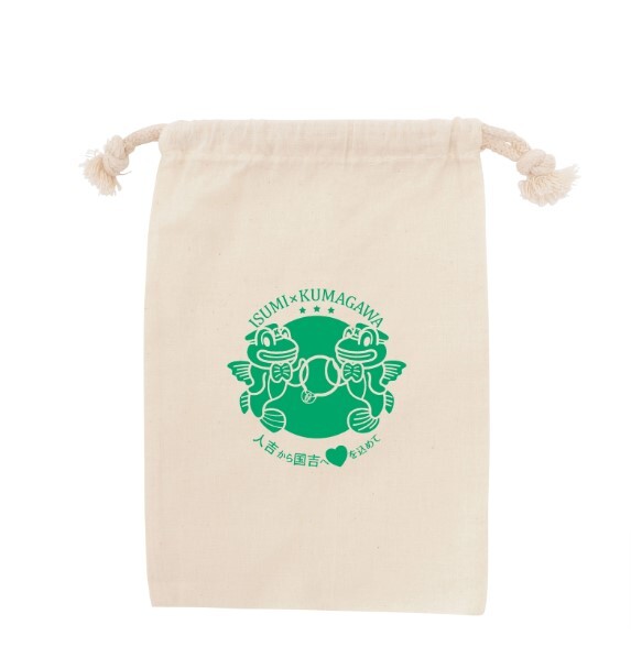 くま川鉄道さんの「かまんちょ、せぐっちょ」のキャラクターを用いたこのデザインをあしらった商品となっておりますが、ヘッドマーク製作当時「国吉から人吉へ」と、「吉」という縁起が良い漢字が共通な事から復興への縁起付けにと、このキャッチフレーズに製作をいたしました。