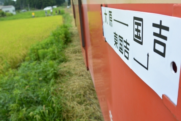 という設定のもと、2017年8月20日にキハ30を動態保存するため建設した東国吉支線の開通お祝いも兼ねて、キハオーナー・サポーター限定乗車体験が開かれましたが、その際に製作したサボをブラッシュアップした上でリバイバルしたものであります。