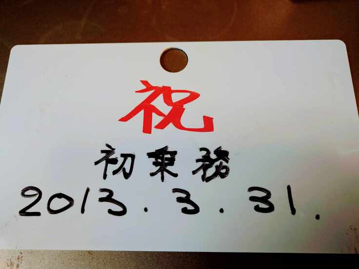 ↑初乗務の日、鳥塚前社長よりプレゼントされたお祝いサボ