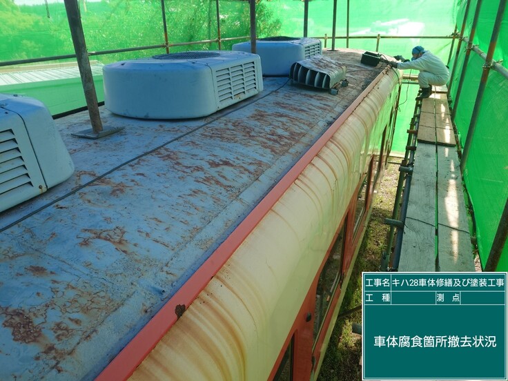 引き続き、キハ28車体修繕及び塗装工事の状況をお伝えいたします。
