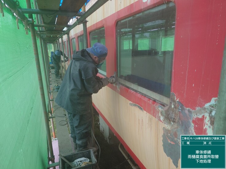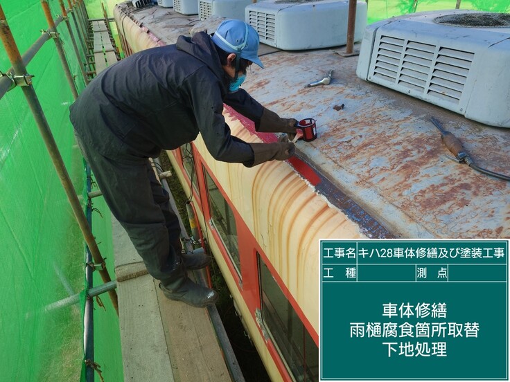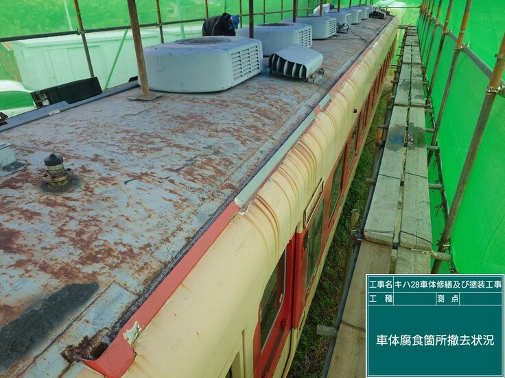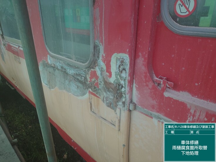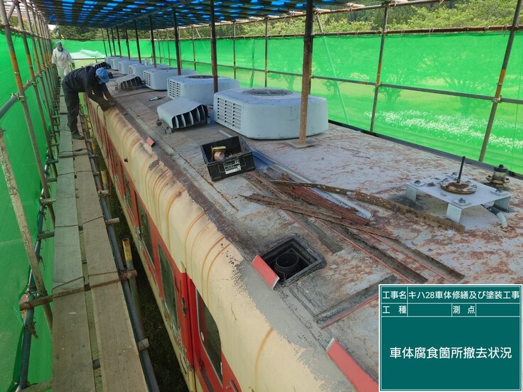 現在施工中のキハ28車体修繕工事の様子を引き続きお届けいたします。