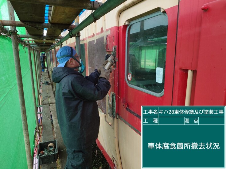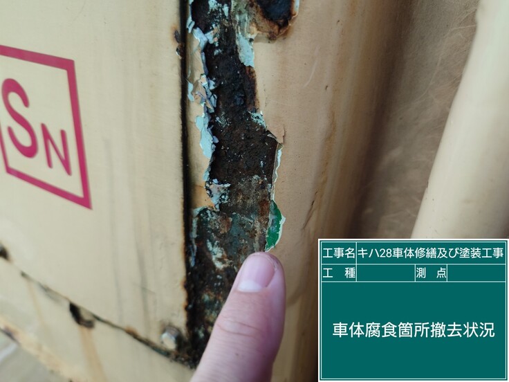 【工事日誌】車体修繕7日目、過去の車体色を垣間見る