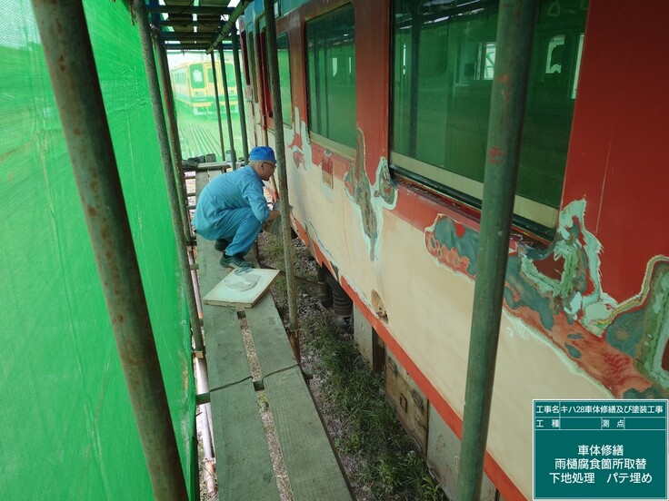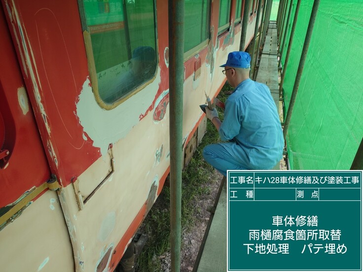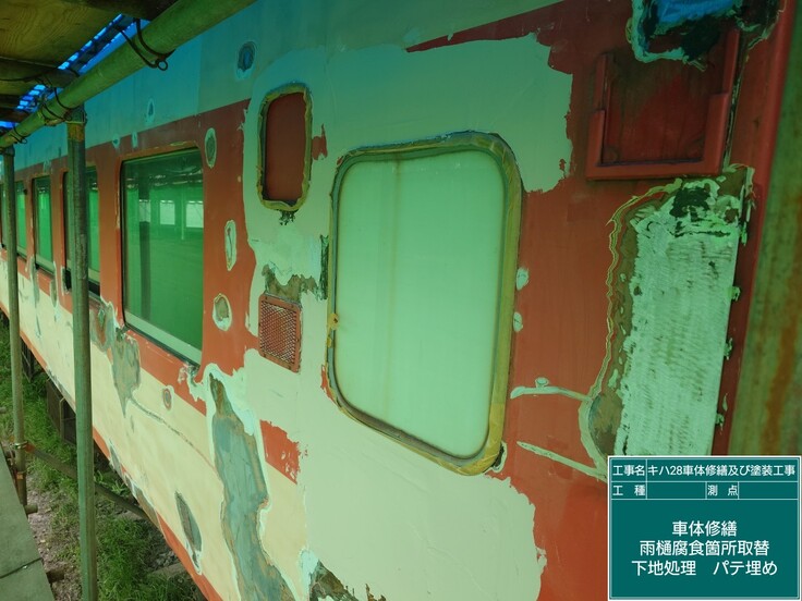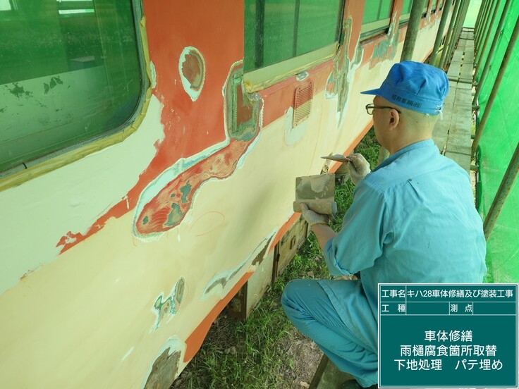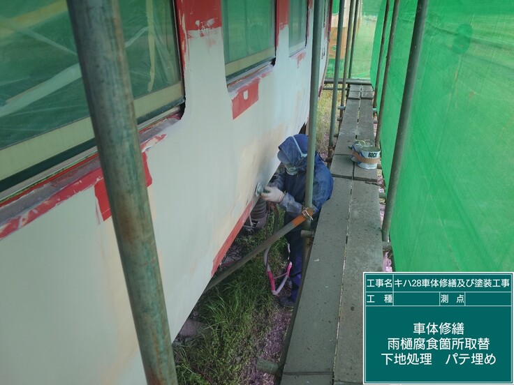 引き続き同一作業の続き、塗装下地(パテ)工事が行われていて