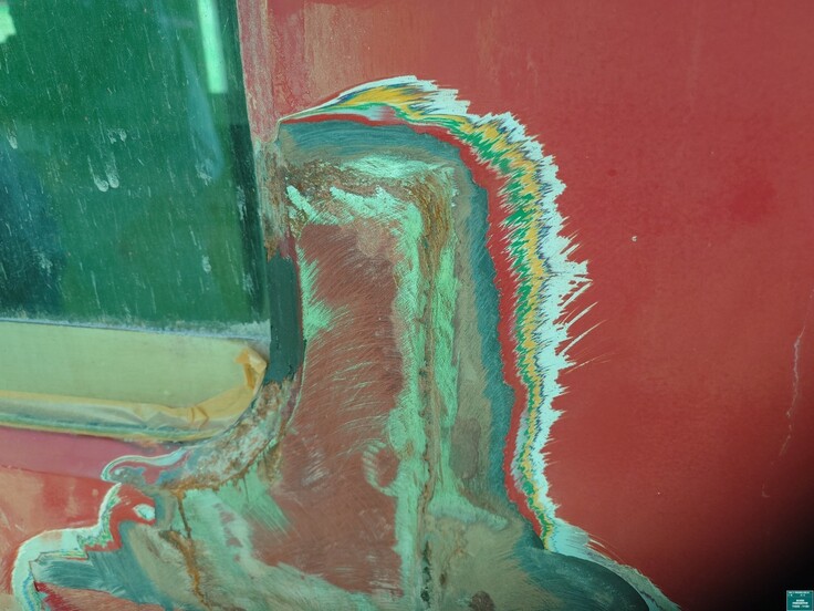 車体修繕箇所および塗装剥離箇所と、塗装が残った部分に段差が残らないように