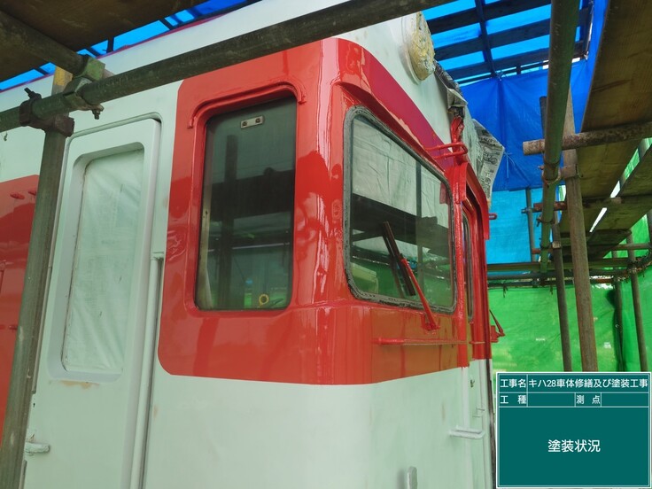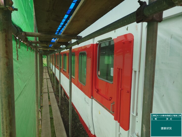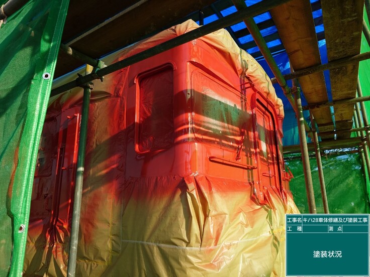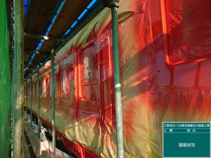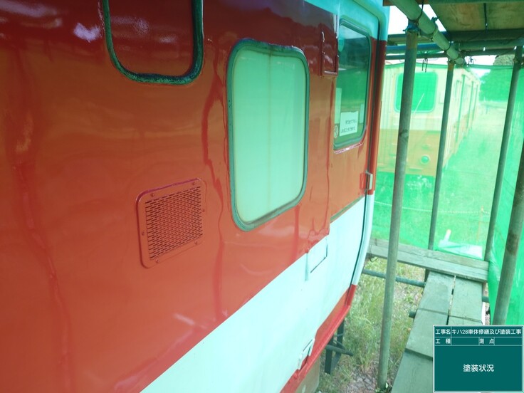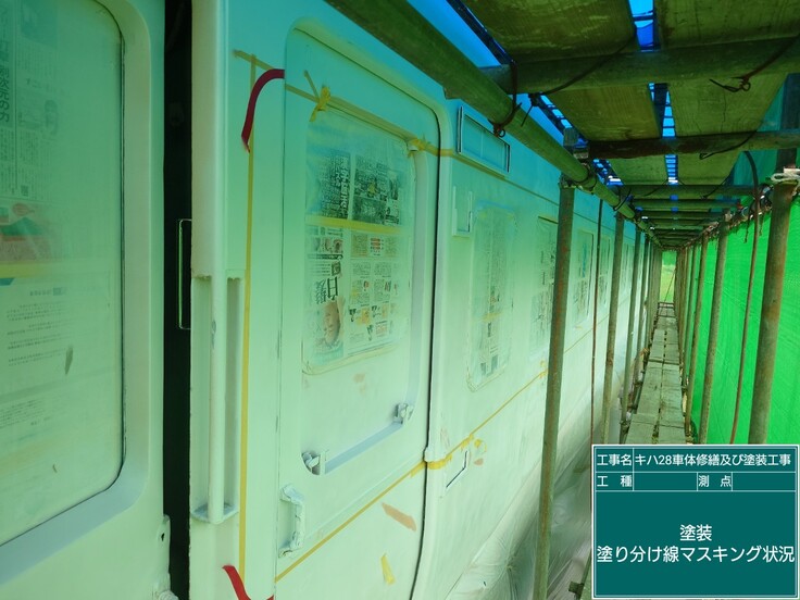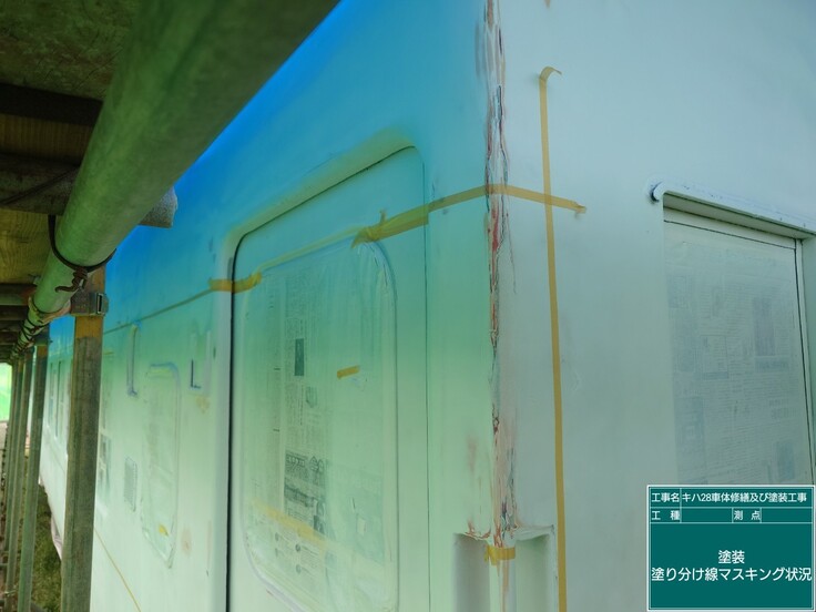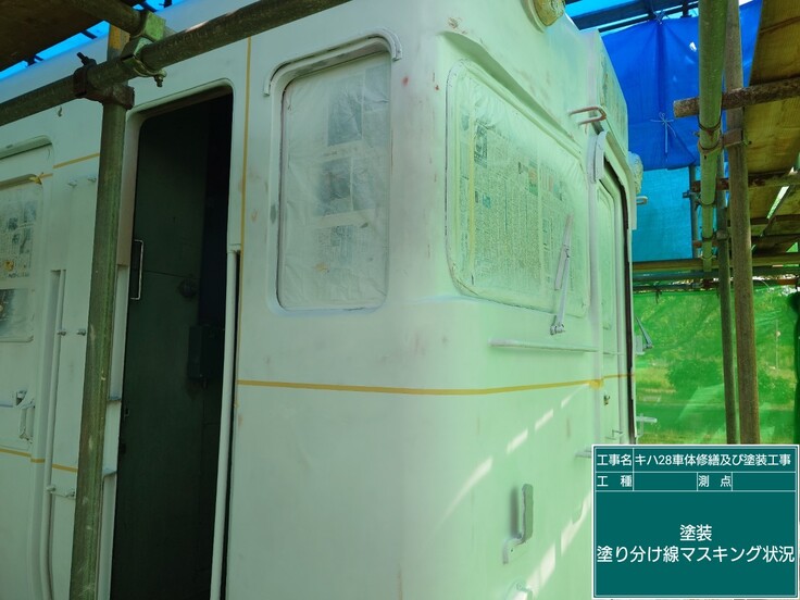引き続きキハ28の塗装作業の様子をお伝えいたします。