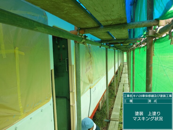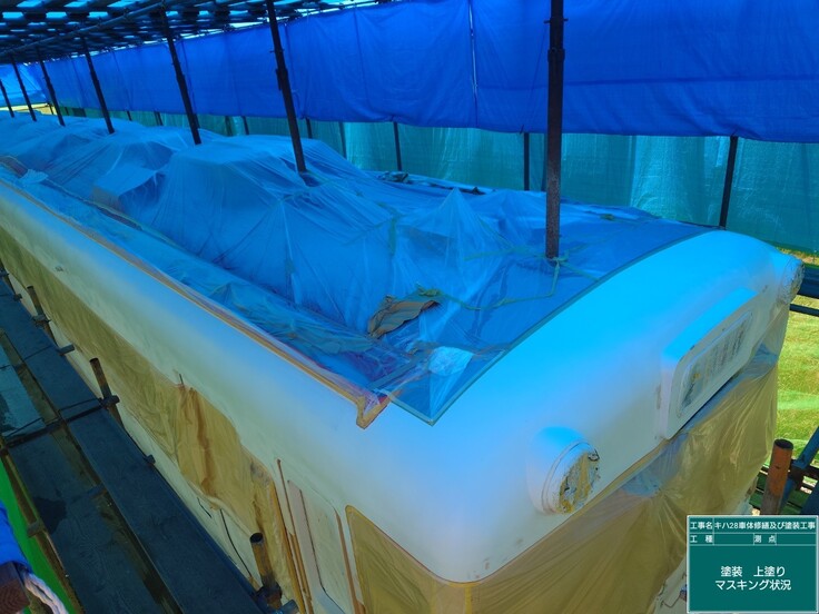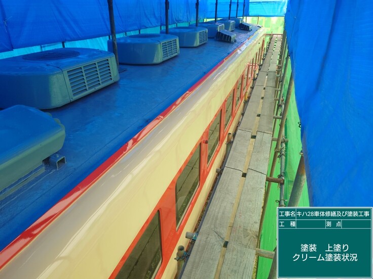これにて、キハ28車体修繕および塗装工事の大きな工程(修繕塗装業者さん)は完了しました。