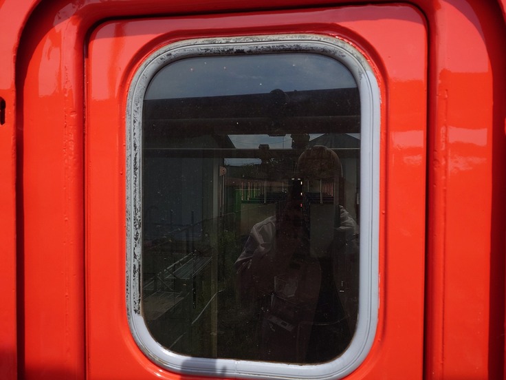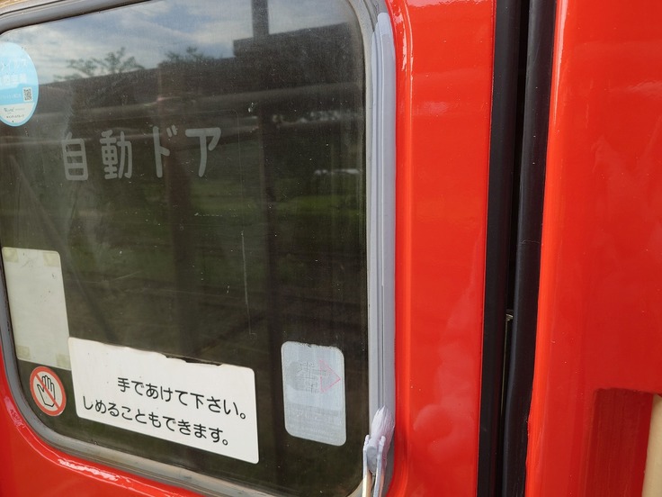 もともとこの車のHゴムは現在標準の黒色ですが、運行開始直前に灰色で塗装しております。