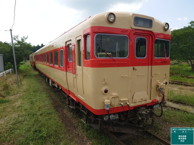 キハ28の車体修繕と塗装工事ですが、足場の撤去が完了し