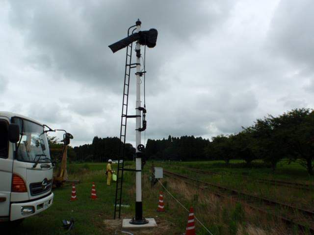 さらに微調整(梯子の固定等)がありますが、腕木式信号機の移設は完了です。