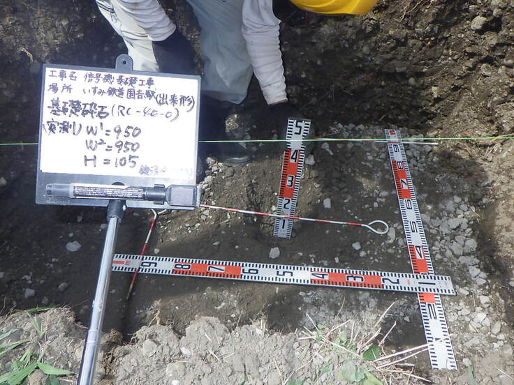 これは基礎砕石の出来形測定です。