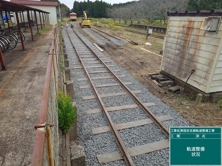 これまでキハ28-2346号車の車体修繕および塗装、腕木信号機移設工事、東国吉支線0番線(追加接続部分)軌道整備とすべての現場作業を無事終える事が出来ました。