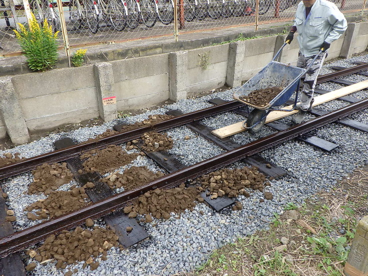前回の活動報告の時点で、従来の軌道を撤去して泥状の道床を取り除いたところまで進んでおります。