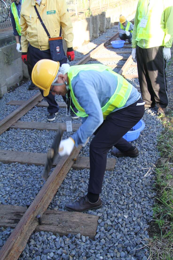最後に、東国吉支線0番線軌道整備で固定せず残しておいた枕木7本に