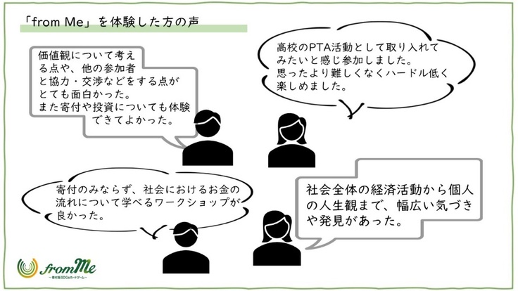 ・寄付や投資が社会を良くするために「つながることを実感できる」機会を、カードゲームとして学べたことが学びになった。