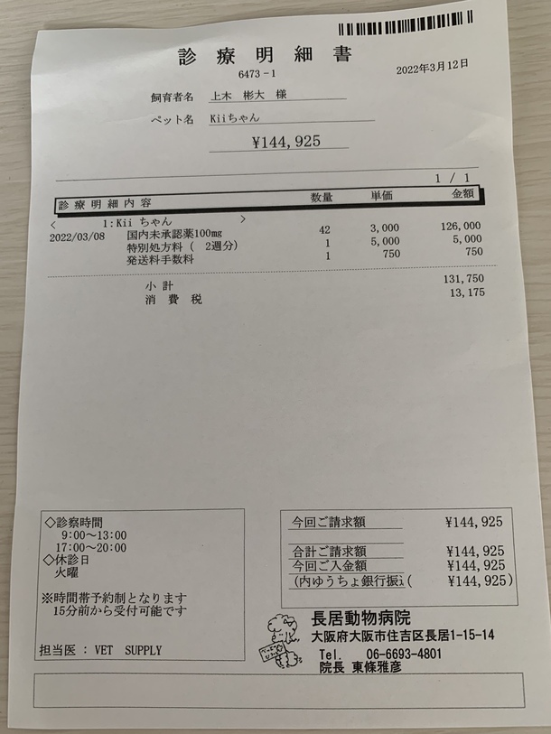 1日250mgから300mgになりました🐈