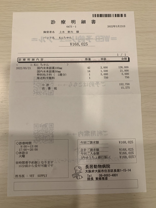 前回より順調に体重が増えているため50mg増えて350mgの投薬です💊