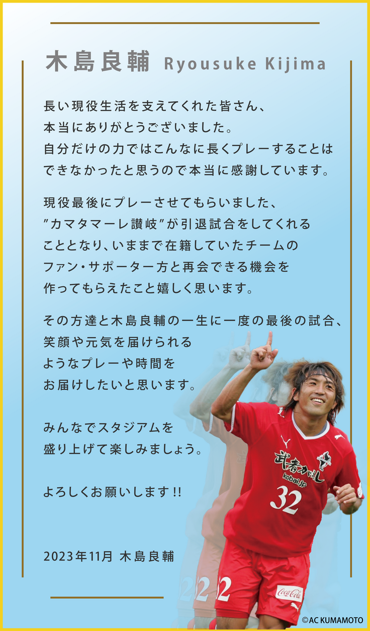 「木島良輔 引退試合 12月23日 in香川」のクラウドファンディング終了まで、残り2日となりました。