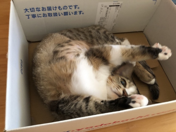 今朝はダンボールの中でひとり遊びをしていました。もうすっかり我が家の一員です💕