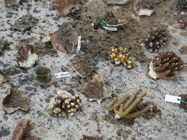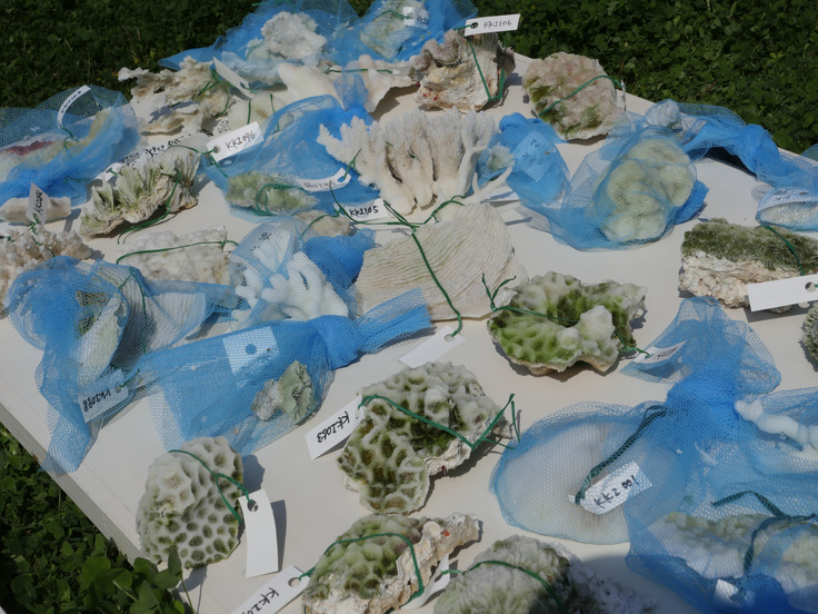 採取したサンゴたち。写真に写っているのはごく一部です。(特別な許可を得て採取しています)
