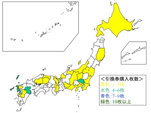 3位: 東京都、神奈川県、大阪府、静岡県、岩手県(3口)