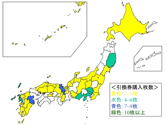 1位: 京都府、大分県(7枚)