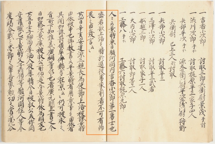 2代友兼(ともかね)公の時には、文治5年(1189)の奥州征伐や建久4年(1193)に行われた富士の巻狩に「吉香小次郎」の名前で参加していることがこの吾妻鏡の中で確認できます。