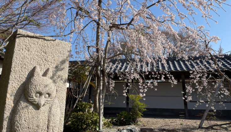 令和5年3月28日 「木菟の手水鉢」のレプリカと枝垂桜