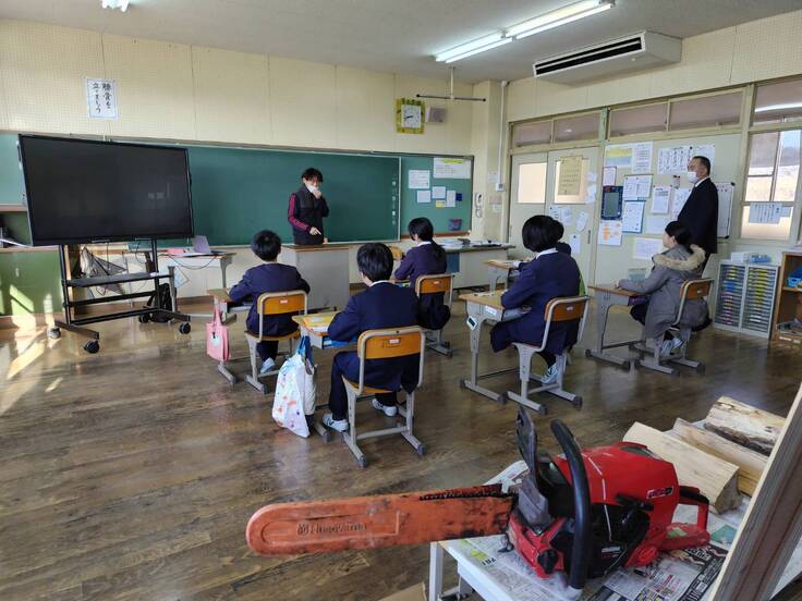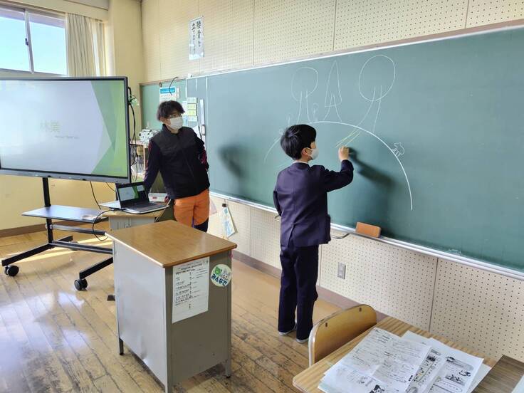 2024年2月9日、北広島町立新庄小学校で林業の授業を行いました。森林の役割や林業という職業について話をしてきました。