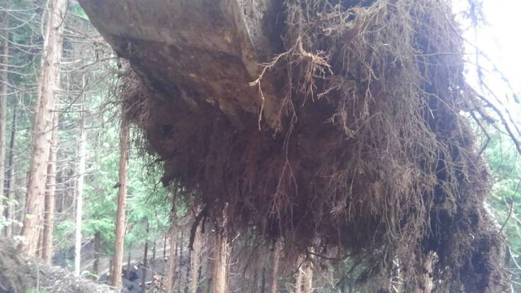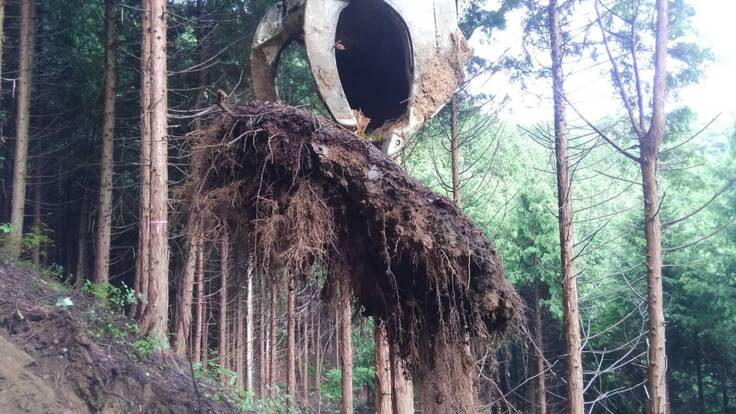 健全な森の根っこは大きくて土砂を抱っこしています。