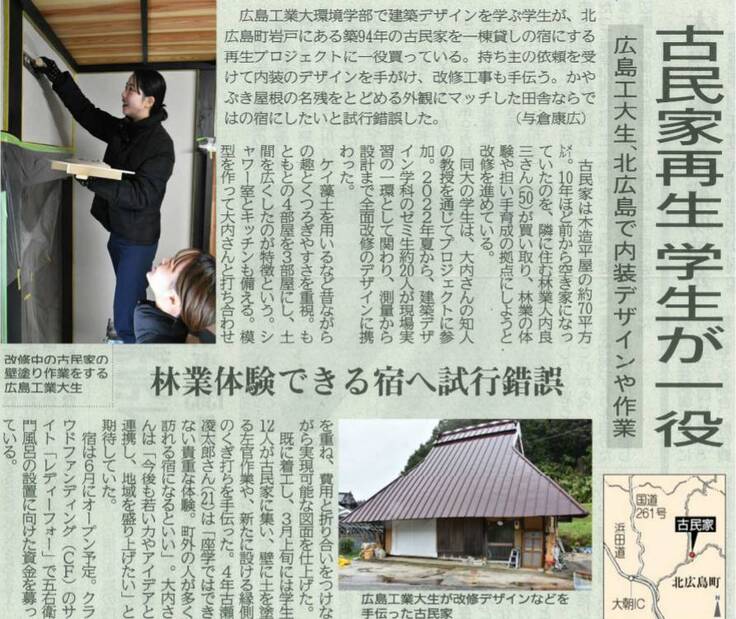2024年3月9日に広島工業大学の学生さんと100プロそして地域住民の方と一緒に行ったDIY勉強会の記事が中国新聞さんで紹介されました。