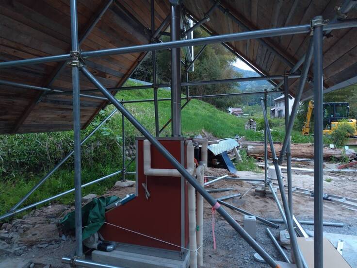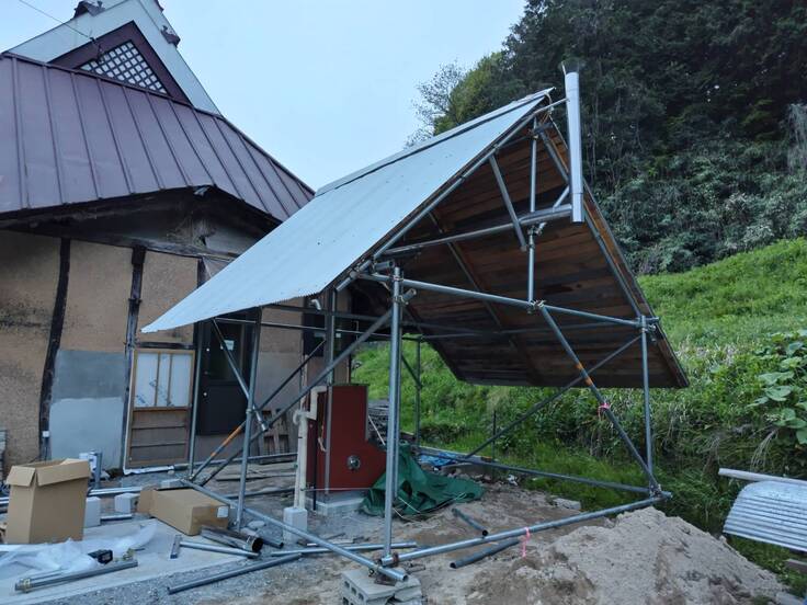 薪ボイラーの仮設屋根を設置しました。