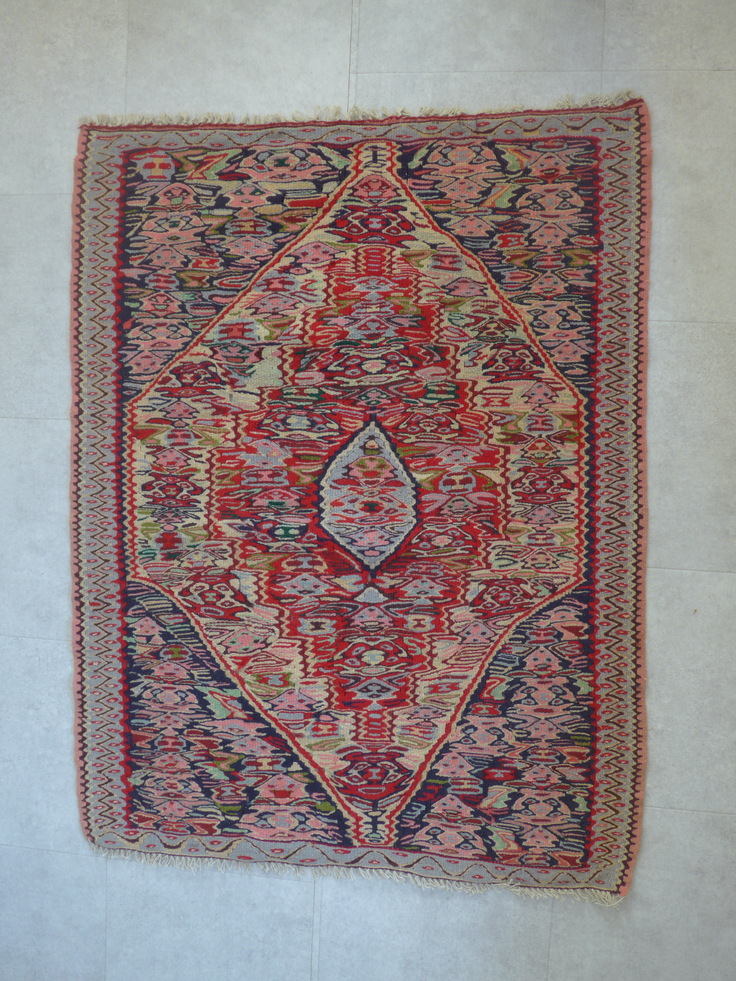 まずキリムの説明をしますと、キリムとは中央アジア、アフガニスタン、イラン、トルコ、コーカサス山脈周辺で生活していた遊牧民が織っていた布です。