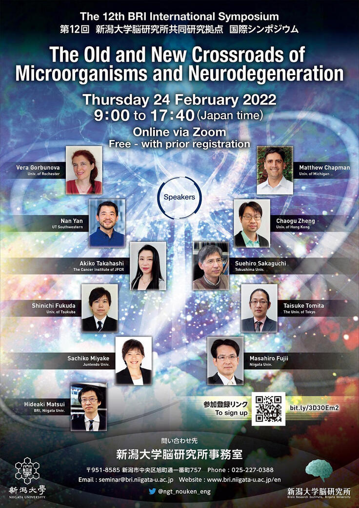 今週の2月24日木曜日に国際シンポジウムを主催します。シンポジウムのタイトルは"The Old and New Crossroads of Microorganisms and Neurodegeneration"で、日本語だと"古くて新しい微生物と神経変性の交差点"となります。神経変性とはパーキンソン病やアルツハイマー病、あるいはALSなどの疾患の状態を意味します。原因が未だ不明で徐々に脳神経が病気になる、という意味合いと考えてもらっても構いません。神経変性・神経難病の研究者やその関連分野の研究者の先生方が、最新の研究成果を議論します。残念ながら言語は英語ですが、成果報告書などにわかりやすく日本語で記載します。