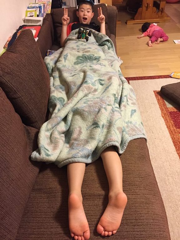 毛布から顔を出しているのが長男(小4)、足を出しているのが二男(小1)です。
