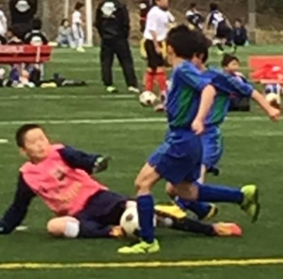 子どもたちのサッカーでございます。(ピンクのキーパーが長男です)