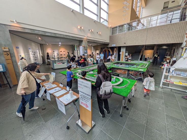 19日はあいにくの不安定な天気でしたが、博物館制作のオリジナルキマロキグッズの販売をはじめ、キマロキ清掃体験、創作キッチンたまさぶろうさんの特製お弁当、特大の鉄道ジオラマ運転、キマロキぬりえコーナー、名寄市天文台コーナー(熊出没で施設休館のため会場変更)などあり、家族連れで賑わっていました。