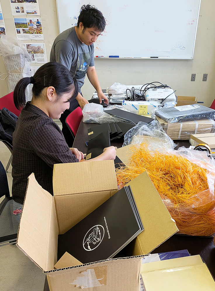 大学は夏季休暇中ですが、就職活動やアルバイト等の時間を調整しあいながら、少しずつ梱包作業を行っています!