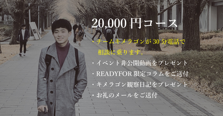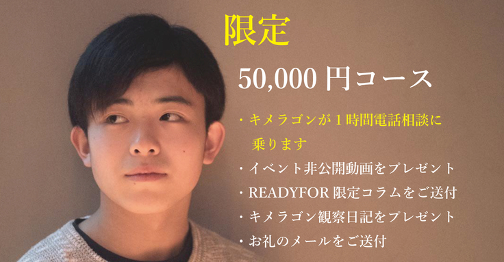※チームキメラゴンとは、キメラゴンのマネジメントをするガンガンを主としたチームです。一般リターンの電話相談は「キメラゴンと直接の相談」ではなく、キメラゴンをマネジメントするチームが対応いたします。