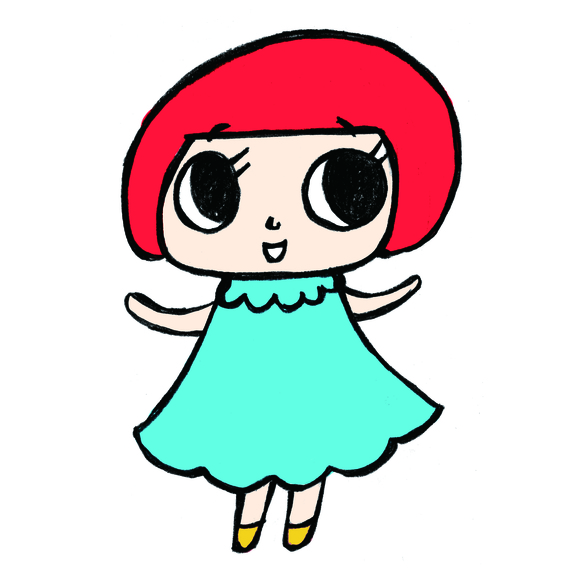 まずは赤い髪の毛と大きな目の女の子です。水色のワンピースを着ています。