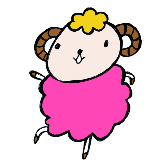 2点目はピンクのひつじ。僕にはにこっと笑っているように見えます。