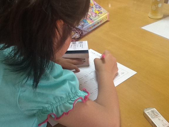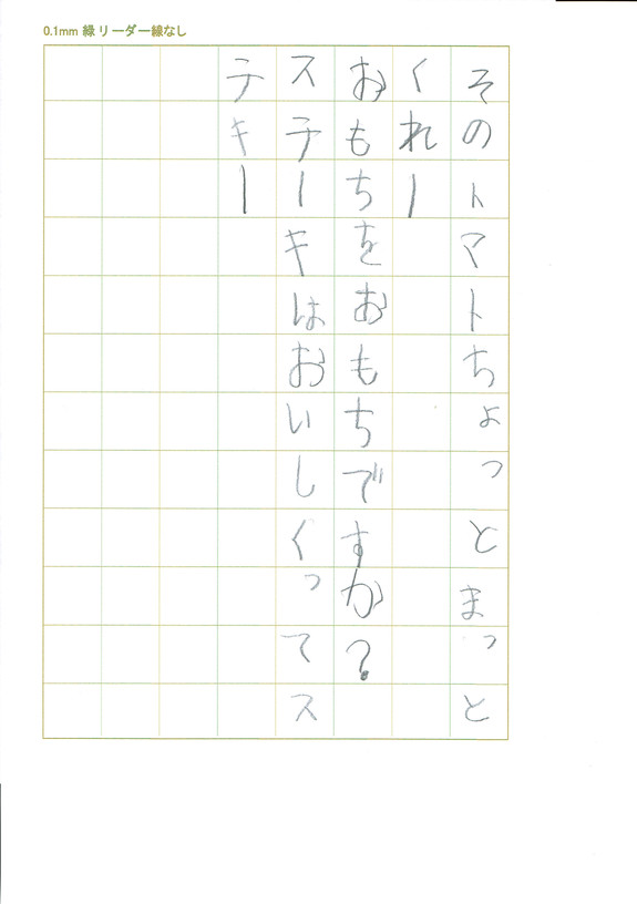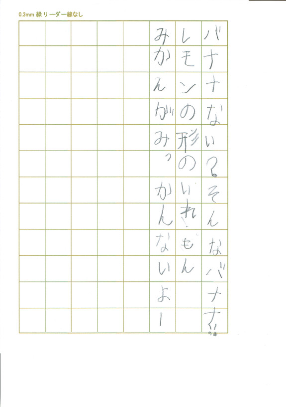 この子がいまハマっているダジャレを書いてもらいました。実際に書いた文字はこんな感じです。