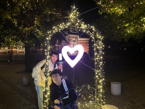 写真は門司港のイルミネーションフォトスポットと、隠れミッキーのごとく隠れているカンモンハートです。