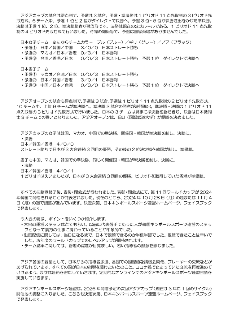 ・国際大会のレポート(PDF)をメールでお送りします。(大会終了後)