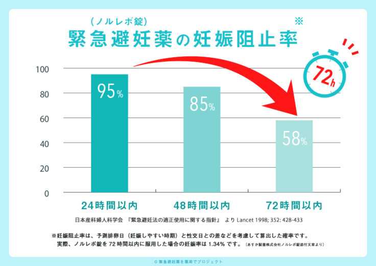緊急避妊薬は早く服用するほど有効です。薬局で購入できればアクセスは大きく改善し、すぐに服用できることで本人もパートナーも予期せぬ妊娠への不安を大きく軽減できます。
