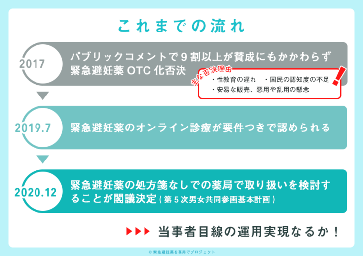 これまで2017年の厚生労働省の検討会で、緊急避妊薬の薬局販売が検討されたものの、使用者の知識不足や性教育の遅れ、悪用や濫用等の懸念があることや、薬剤師の知識が十分ではないこと等を理由に見送られました。その一方で、海外並行輸入薬がフリマアプリやSNSで転売され、逮捕者も出ています。