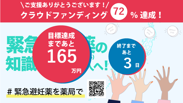 残り4日です。緊急避妊薬の知識を広め、薬局で買えるように。望まない妊娠は、女性の体と人生にとって大きなリスクとなります。是非応援を! https://t.co/MD71BvH1qi