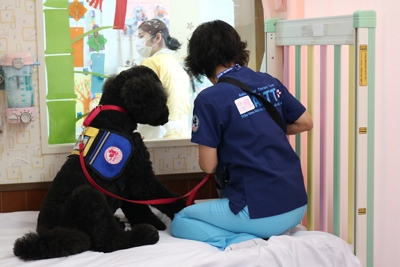 そんなミカは、「患者さんの笑顔を増やすために病院に犬を入れたい!」という強い思いを持った医師・看護師の方々との出会いがあり、「人とふれあい癒す」という特技を活かして2015年4月より聖マリアンナ医科大学病院の職員「勤務犬」として動物介在療法・動物介在活動で活躍することになりました。