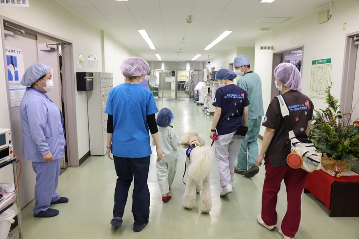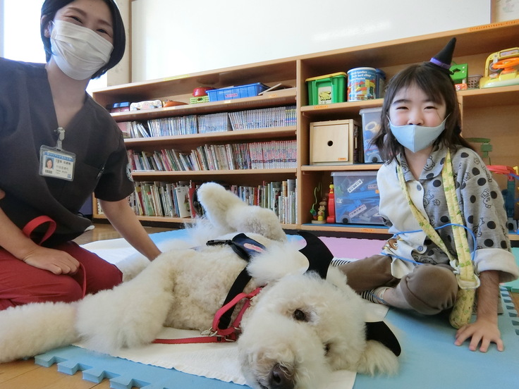 先日、闘病中であった初代勤務犬ミカが逝去した。入院中に動物介在療法でミカに救われた多くの子どもたちが、ミカのお見舞いに来てくれた。ミカがくれた優しさや思いやりが子どもたちにも受け継がれていることを感じた瞬間であった。AATは多くの患者さんに病気に立ち向かう勇気と安らぎを、私たち職員にはたくさんの笑顔と優しさを与えてくれる。勤務犬が3代目と続くこと。そしてこのような医療の展開が日本全国に広がってくれることを願ってやまない。