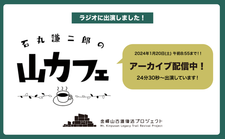 「石丸謙二郎の山カフェ」にて金峰山古道復活プロジェクトを取り上げていただきました!